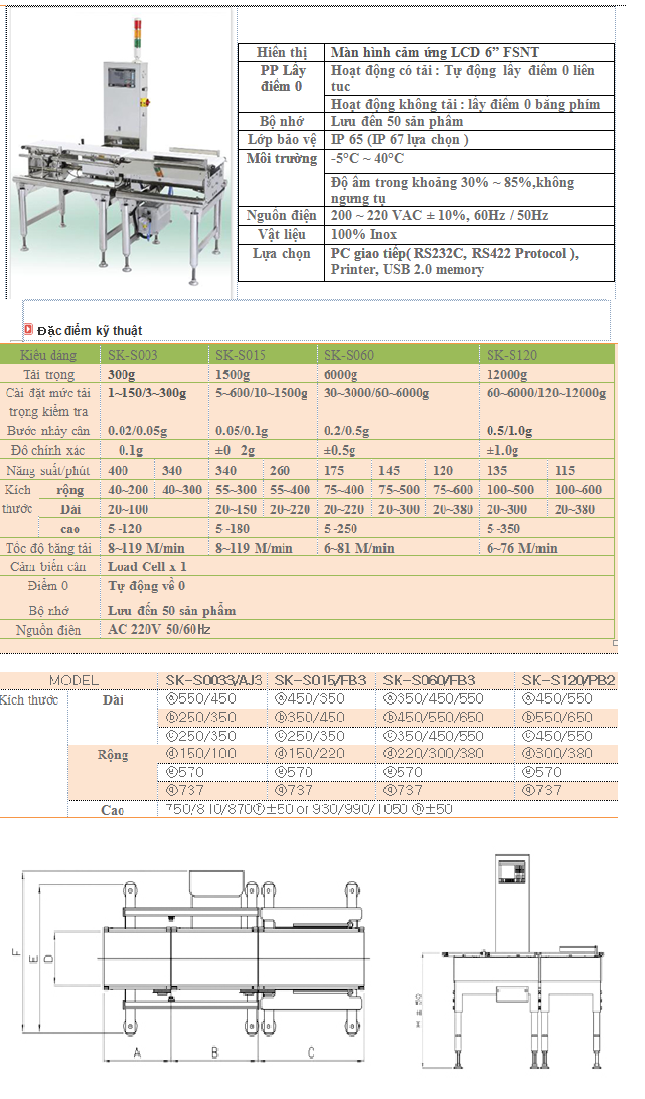 • Tính năng: Cân kiểm tra độ nhạy cao bằng công nghệ DSP - Khả năng chống nước IP 65. - Do có nhiều kinh nghiệm trong lĩnhvực này, nên tất cả các sản phẩm được thiết kế để lắp đặt ở những môi trường khác nhau. Khả năng đáp ứng cao do thiết kế độ rông trọng lượng sản phẩm. - Sử dụng bộ lọc kỹ thuật số tốc độ cao của công nghệ DSP
